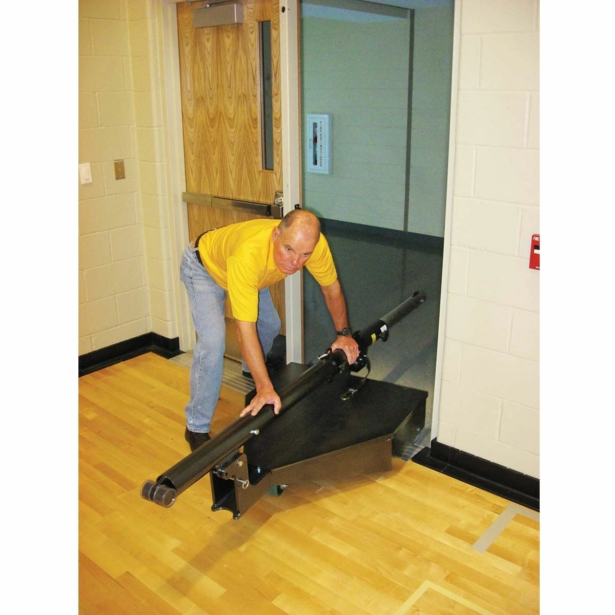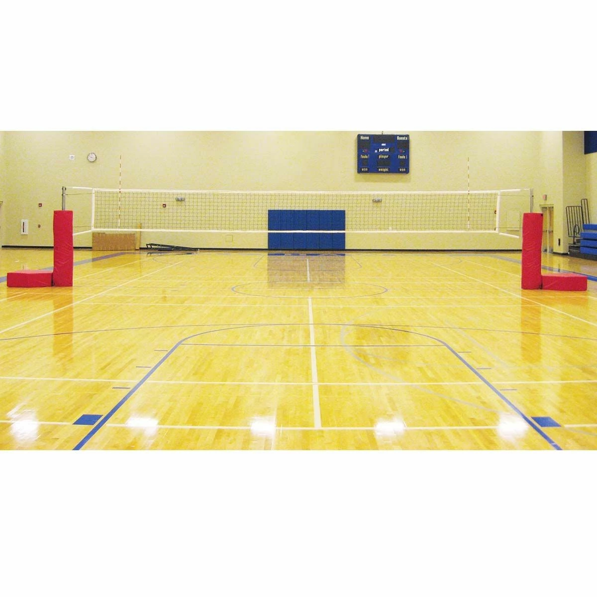 The First Team Horizon Portable volleyball net system is free-standing and does not require floor sleeves or floor anchors. The 700lbs of built-in ballast inside each base provides enough counter balance for competitive play. This portable net system is designed for quick and easy height adjustments for official men’s, women’s and junior heights, with just the turn of a knob. The Horizon Complete system includes First Team’s top quality kevlar net, antennas, rope covers, uprights, wheeled bases, and post and base padding. The portable base units can be easily rolled into a storage room and folded flat for compact storage. The built in anti-skid floor protector engages the floor automatically when the post is lifted. Spectators will have excellent visibility with the low profile base design.ย The worm gear driven net tensioner makes tensioning easy. Pad lettering is available (contact Anthem Sports for details).