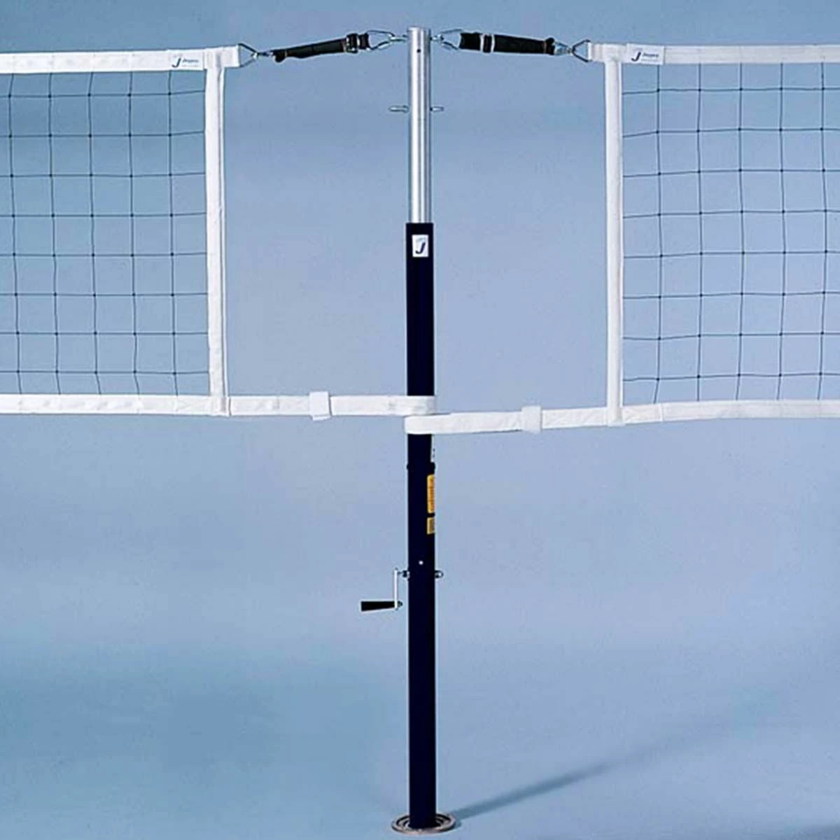 Extend your program with this center standard package for side by side court set-up. TheΒ Jaypro PVBC-700 center standard package can turn your gym into a two-court set-up when accompanied with the JayproΒ PVB-7000LS Powerlite International volleyball net system, see below.TheΒ patented Flex Net eliminates all cumbersome cables and replaces them with heavy-duty woven nylon top and bottom bands. The headband attaches directly to the winch leader strap to provide superb net tension. Designed for systems set at a maximum of 36′ 8′ on center and a minimum of 35′ on center (normal spacing is 35′ 10″).