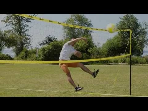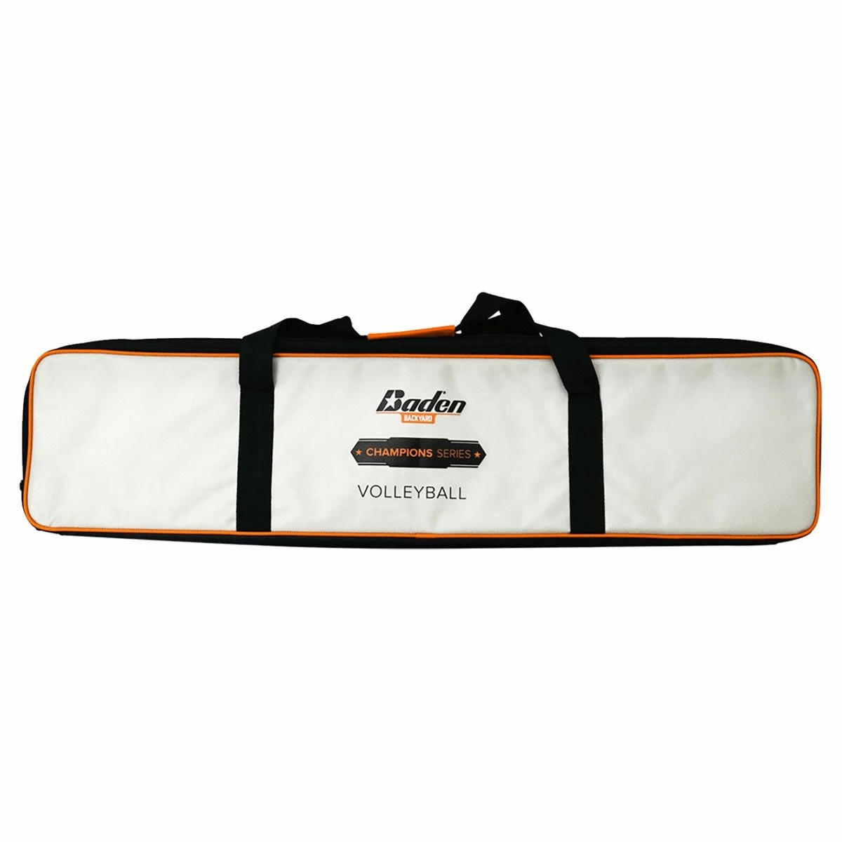 The Baden Champions Volleyball Set features everything you need to get a game going in your backyard or at the beach. The set includes 1 Baden premium quality volleyball, 1 ball pump w/needle, 2 heavy duty adjustable steel poles, 1 regulation nylon mesh net with waterproof tape, 1 set of weatherproof boundary lines, and 1 durable weather-resistant carry bag with zipper. This set features black powder-coated heavy duty steel poles & stakes, weatherproof net and boundary lines that ensure it will last. The whole set fits into one single durable weather-resistant carry bag for easy storage and transportation. A frustration-free design ensures an easy setup and take-down.