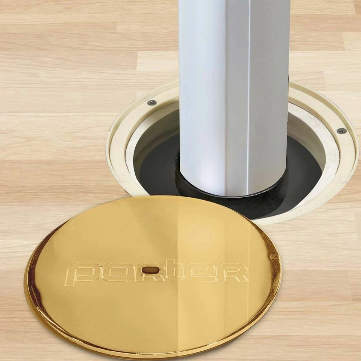 Give your gym a moreΒ professional look with this volleyball floor sleeve and brass coverΒ plate from Porter. Β Designed for floating wood floors, this sleeve should beΒ installed by a qualified installer into the sub-floor. Β The 8″ brassΒ cover plate is installed into the floating wood floor and provides a finished look.