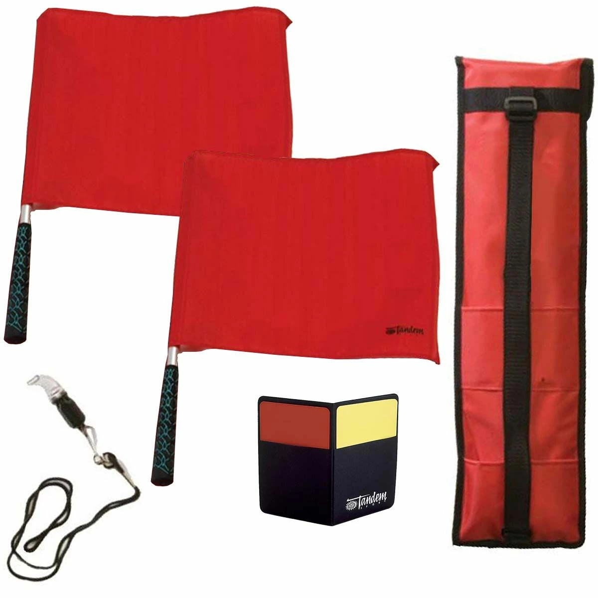 - Kit includes: penalty cards, 2 linesman flags w/ golf grips, whistle & lanyard, carrying case
