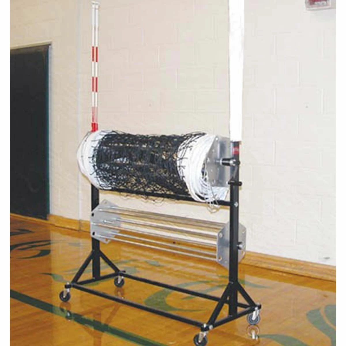 This unique horizontal cart works like a dream to roll and store your volleyball nets!