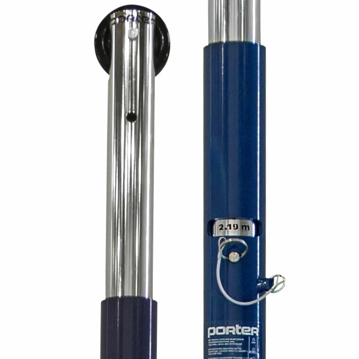 The Powr-Steel standard volleyball net package from Porter is built to last with an extremely durable steel frame. The 3″ OD steel uprights are sleek, strong, and weigh under 50lbs each. The pair of uprights includes one winch post and one end post. The uprights feature a telescoping design with a high strength pull pin for easy height adjustment to meet all USAV, NCAA and NFHS requirements for competition. A powder coated finish on the bottom part of the upright provides corrosion resistance. A self-locking worm drive prevents net snap back and loss of tension. The bottom of each upright is equipped with an adjustable rubber foot that protects finished floors when moving the standard. This rubber footing can be height adjusted to accommodate ground sleeves that were installed too deeply. The Powr-Steel standard package includes upright padding that is offered in 14 different colors and can be customized with your team’s or school’s logo.