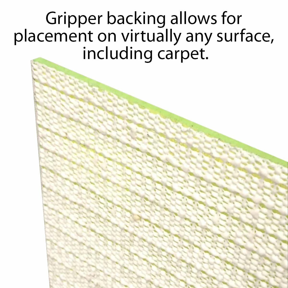 The Tacky Traxx high visibility sticky floor mat base features light refracting technology that illuminates the mat’s edges with aΒ bright yellow/green glow to reduce accidental tripping and injuries. The Tacky Traxx alert mat is so bright you would think that it’s electric but it is not. The Tacky Traxx mat is designed to work with Tacky Traxx sticky mat sheets (sold separately) to remove dirt and dust from foot traffic upon entering a clean room while also providing better traction on slippery floors. The mat is equipped with a gripper backing that allows the mat to be placed on virtually any surface, including carpet. The Tacky Traxx mat system is great to keep shoe soles clean upon entering a controlled environment and for better shoe traction on basketball and volleyball courts.
