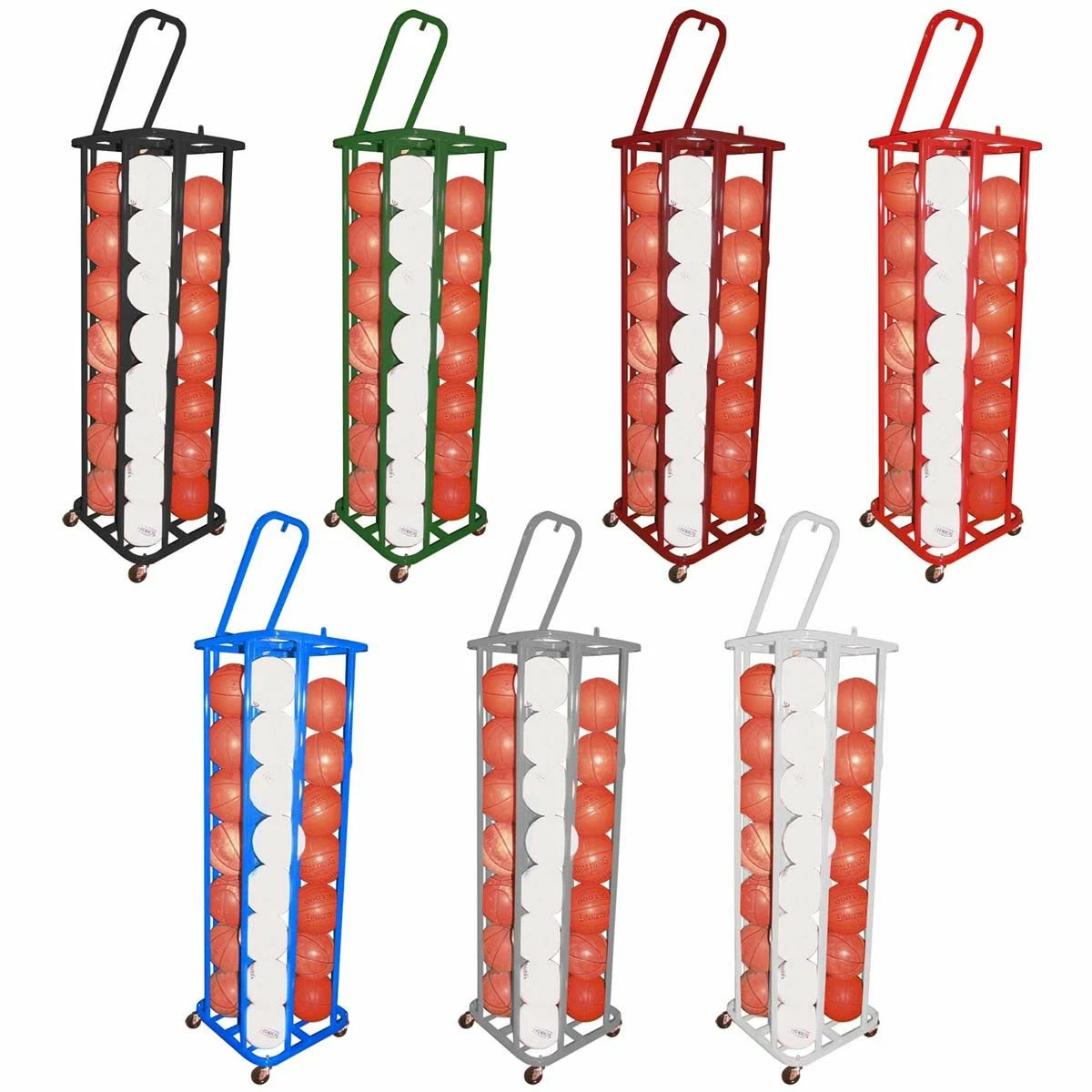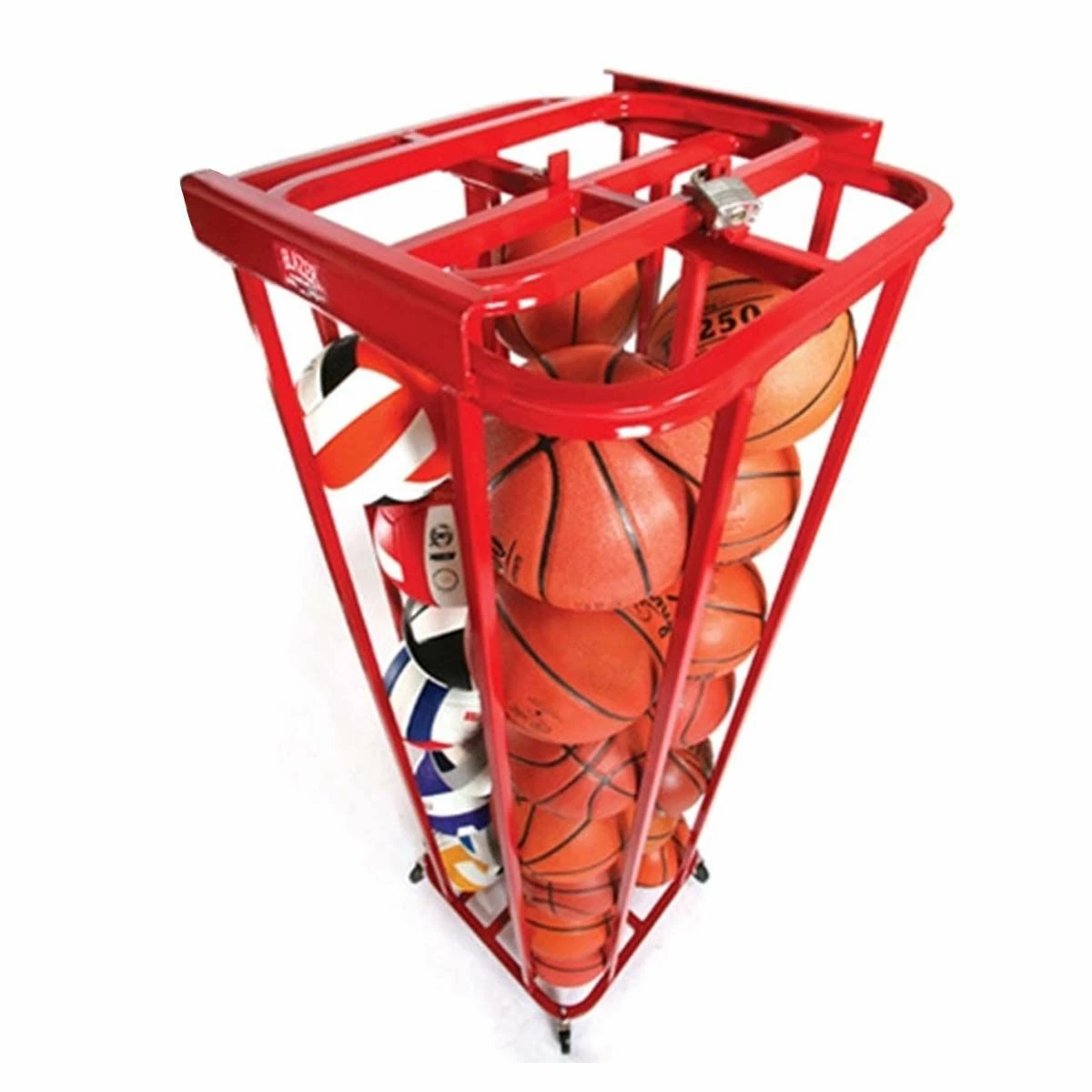- Stores 28 basketballs or 32 volleyballs