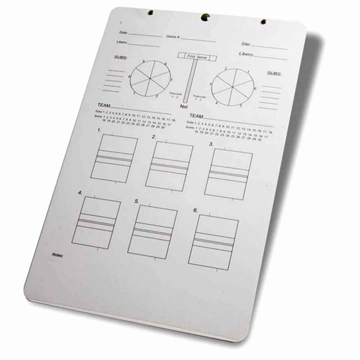 The 9″ x 14″ Tandem coaches’ deluxe volleyball clipboard is a necessity for any volleyball coach. The front of the coaching board includes a volleyball court display, while the opposite side features two rotation locators with substitution and score designations, six court images, and a protective plastic sheet to prevent marker rub off. The included dry erase marker works on both the front and back sides.