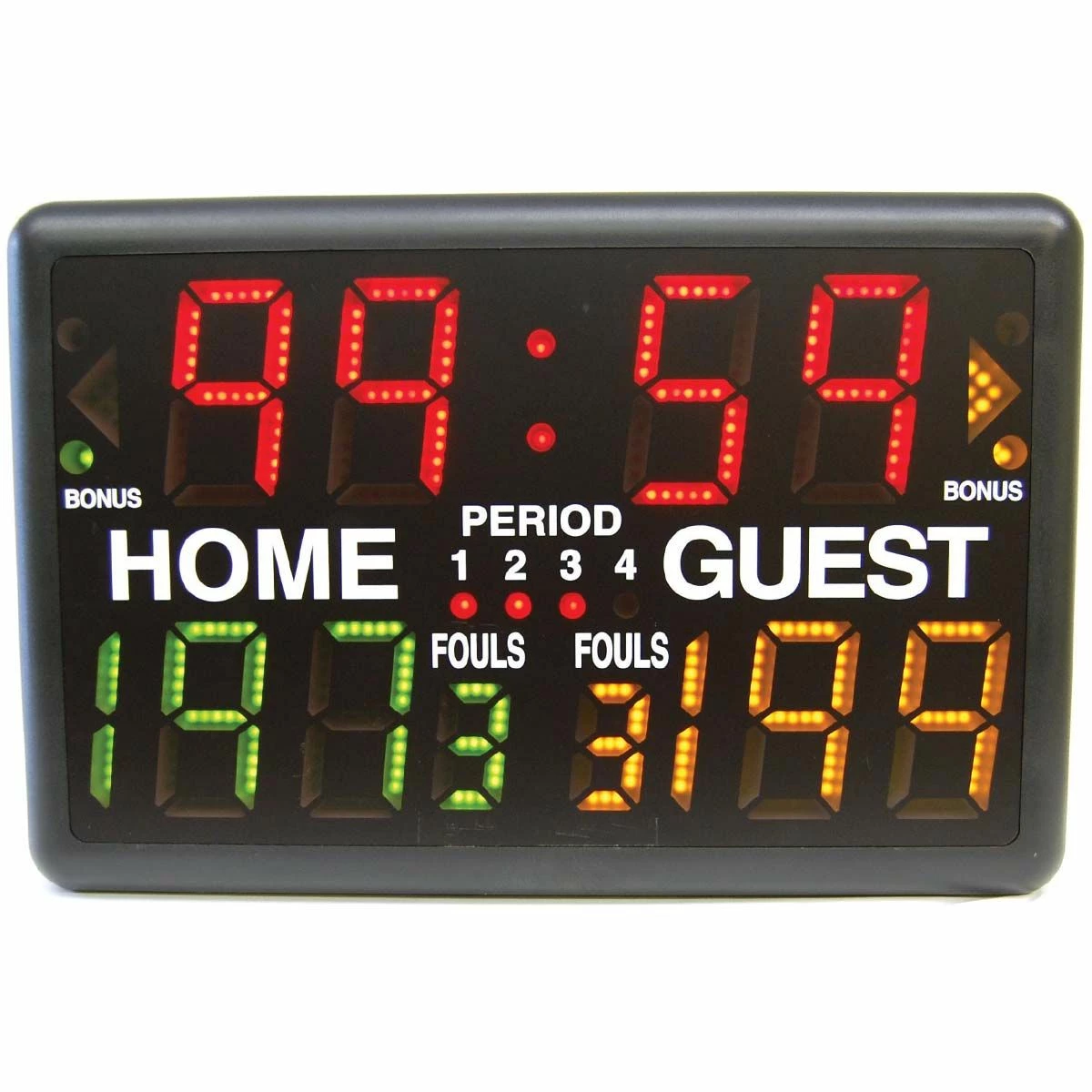 The multi-sport tabletop scoreboard makes keeping score simple and easy! This portable tabletop scoreboard can be used in basketball, volleyball and wrestling. The multi-sport tabletop scoreboard features a clock, stopwatch and timer program with alarm, and bonus, period and foul indicators. A stand is available for purchase separately (see A91-189 below). This scoreboard has a built-in carry handle for easy transport. Now includes free wireless remote!