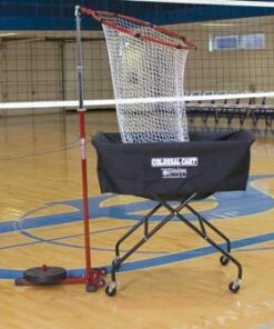 Baden’s premier volleyball cart holds up to 30 volleyballs in its heavy-duty reinforced nylon basket. A tempered aluminum frame adds strength to the cart’s lightweight design. Clipboard and water bottle pockets on side help keep everything you need on the court organized. Rollerblade wheels for easy movement across the floor during practice. The cart’s clear, non-marking wheels won’t leave marks behind. Easy lever locking system allows you to quickly setup the cart. Gusseted sides keep balls from bouncing out.