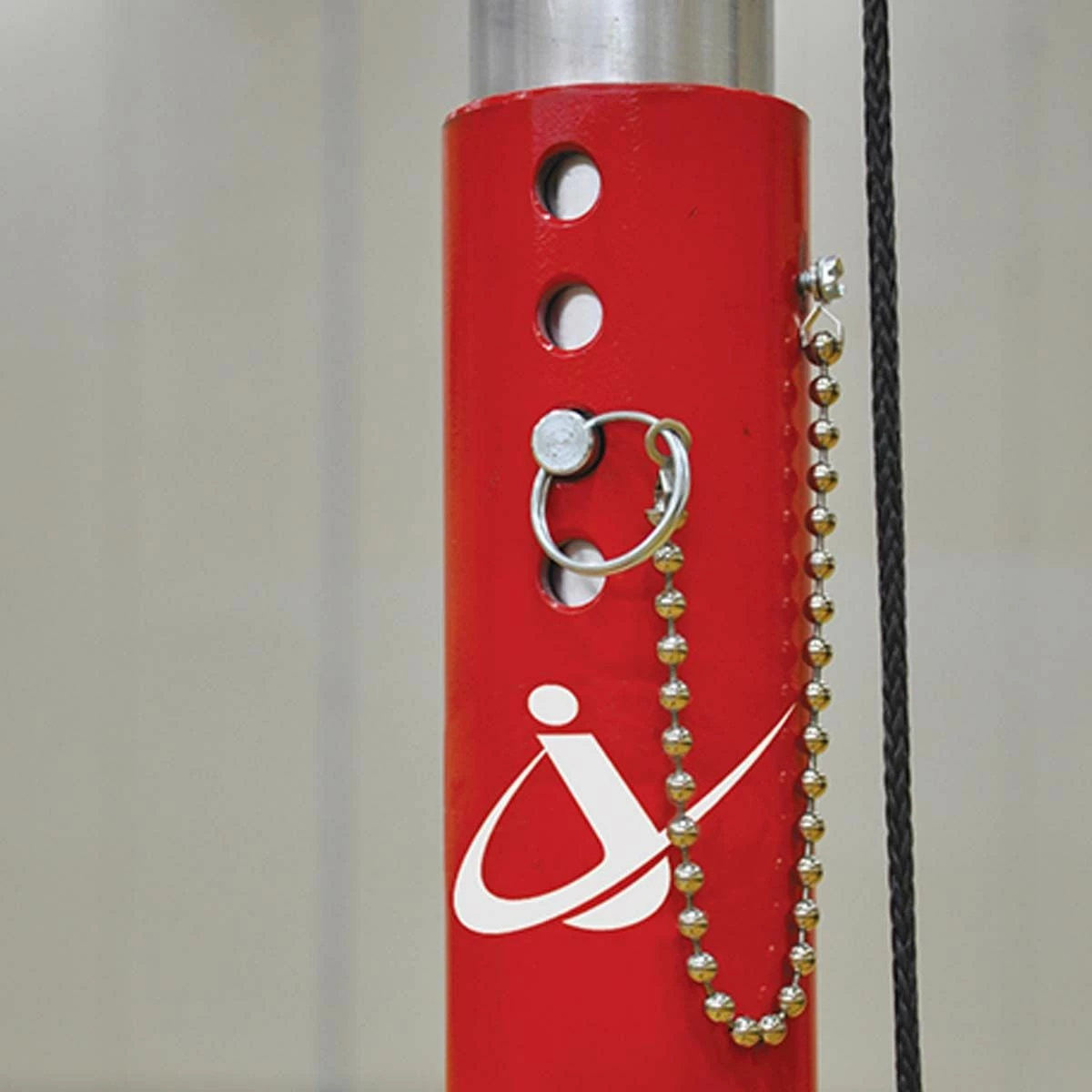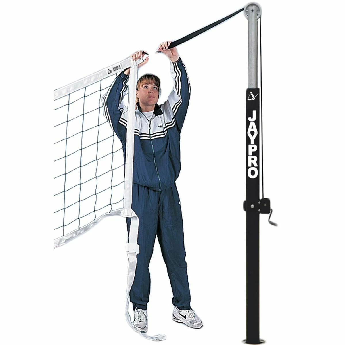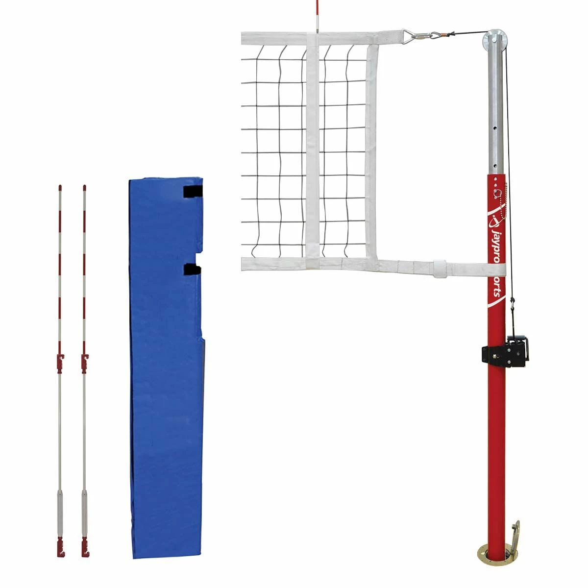The Jaypro 3″ Hybrid Steel PVB-3000 volleyball net system is an affordable, high performance system designed for international, collegiate and high school play. The 3″ OD uprights feature a hybrid design with a steel bottom for strength and an aluminum top for reduced weight.ย The uprights are equipped with a 16 pin-stop height adjustment that ranges from 6’6″ to 8’2″ and accommodates men’s, women’s, junior men’s, and junior women’s net heights. The 3″ diameter uprights can be used with 3-1/2″ diameter floor sleeves via a separately sold adapter (adapter reduces 3-1/2″ to 3″). The heavier weight of the steel uprights makes the Hybrid Steel PVB-3000 best suited for programs that don’t need to break down the system often. The Hybrid Steel’s Flex Net is easy to set up and provides great net tension with very little flex for lively net play. The PVB-3000 ships complete with antennae and upright padding.