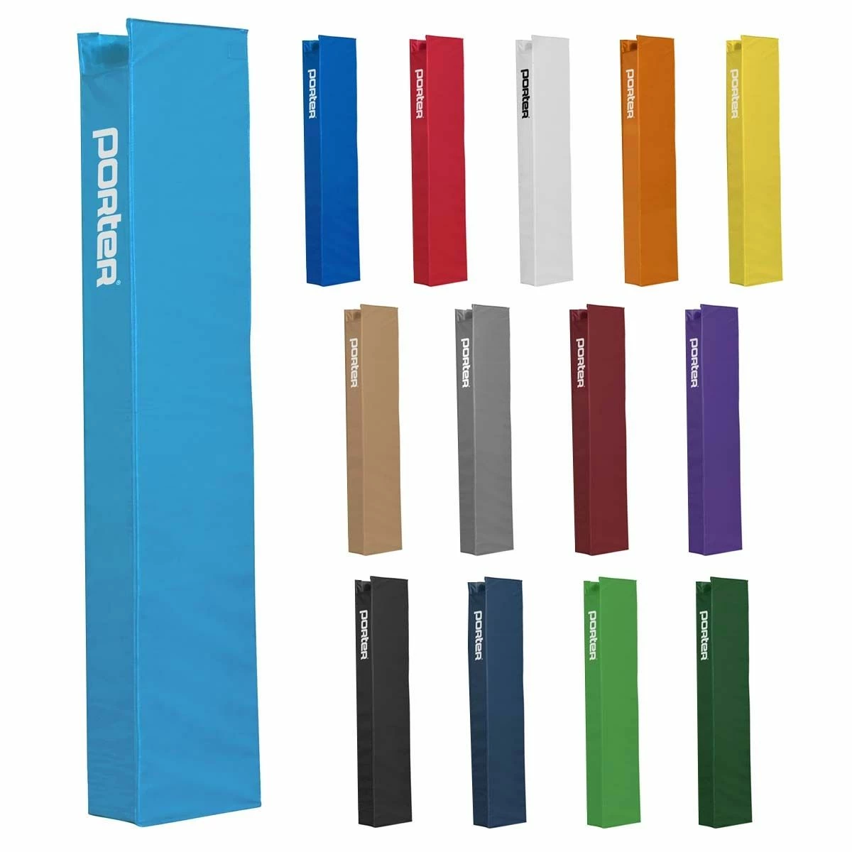 The Powr-Steel 3″ center volleyball standard from Porter allows you to transform your facility into a 2 court, side-by-side layout. With its steel infrastructure and extremely durable frame, this upright is built to last. Made with 3β OD steel, this upright is sleek, strong, and weighs less than 50 lb each. The upright features a telescoping design with a high strength pull pin for easy height adjustment to meet all USAV, NCAA and NFHS requirements for competition. A powder coated finish on the bottom part of the upright provides corrosion resistance. A self-locking worm drive prevents net snap back and loss of tension. The bottom of each upright is equipped with an adjustable rubber foot that protects finished floors when moving the standard. This rubber footing can be height adjusted to accommodate ground sleeves that were installed too deeply. The included upright padding is offered in a variety of colors and can be customized with your team or school logo.