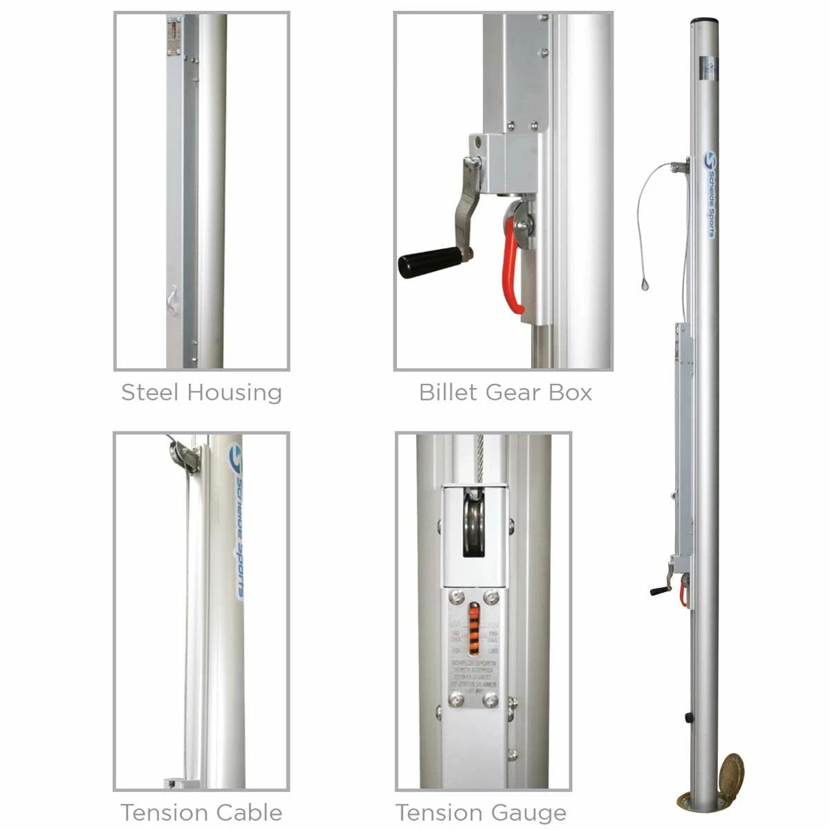 The Schelde Infinity I4 volleyball net system is the ideal net system for any program from elementary school PE class to NFHS high school volleyball programs to college intramurals programs. The super lightweight uprights are safe and easy to set up and can be ordered to fit most floor sleeves. The one-piece design has infinite height adjustment to accomadate all levels of volleyball, badminton and recreational tennis. This Schelde volleyball net system includes all the components you need for competitive play including uprights, net, pads and antennae. Customize your Schelde net system with custom pad graphics and show your team spirit!