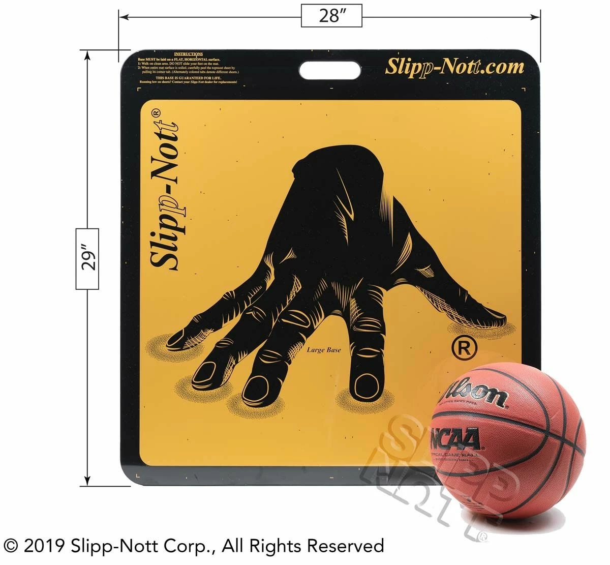 Get a grip on the court with the Slipp-Nott sticky mat shoe traction system. The Slipp-Nott traction system eliminates hand wiping of shoe soles to gain better traction and less slippage. This sticky mat system is ideal for basketball, volleyball and other indoor sports. Removes dust, dirt and wax build-up from athletic shoe soles with one quick action. Ribbed rubber bottom for floor protection. For storage, keep the mat flat and out of the sun. Contains one large LS60 shoe traction base. Traction sheets sold separately (see below).