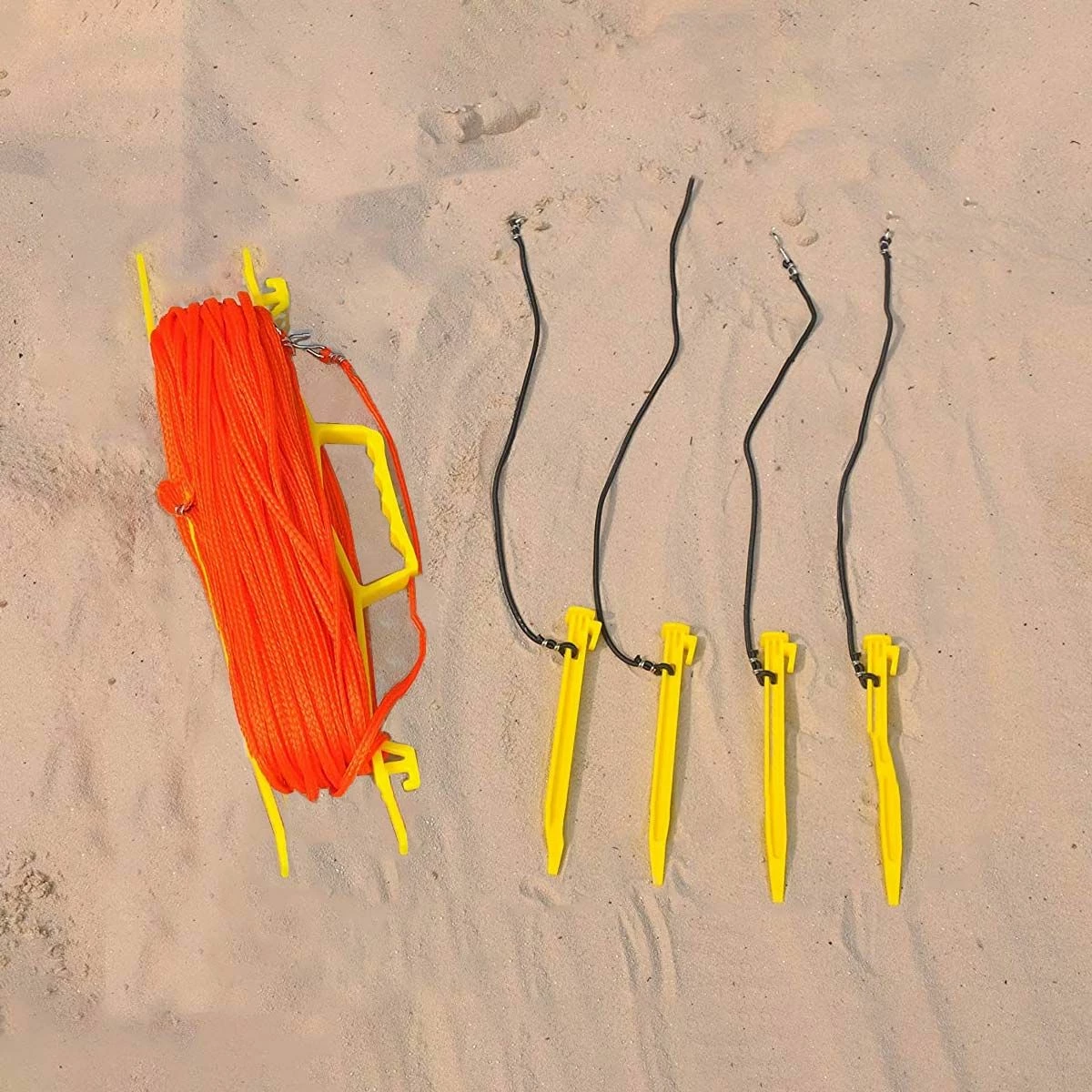 This Tandem outdoor volleyball court rope line system allows you to quickly create a 26’3″ x 52’6″ short dimension volleyball court on grass or on sand. The system features 1/4″ high-visibility orange rope for easy to recognize boundaries. The set also includes corner ties, heavy duty plastic corner stakes, and a convenient plastic storage reel. Get your game on in the backyard or at the beach with this easy to use volleyball court lining system.